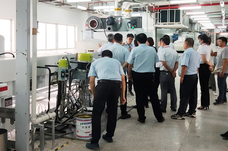 6月3日,迪歐家居集團楊青梅總經理一行,蒞臨東莞大寶化工參觀指導E3智能化生產測試及UV涂裝自動線,交流學習攜手并進,并規劃新一代UV自動涂裝生產線,當日由直銷事業部張正賢總經理、周志鴻副總經理及相關領導出席陪同研討。