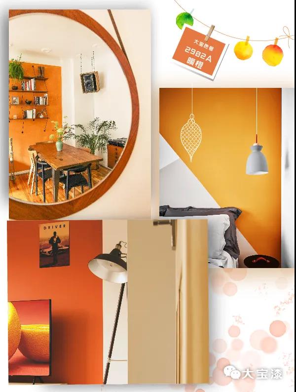 香橙色可作餐廳的布置色,增加食欲;可做臥室背景墻色,愈發(fā)溫暖;用作客廳的點(diǎn)綴色,營(yíng)造空間時(shí)尚格調(diào)。