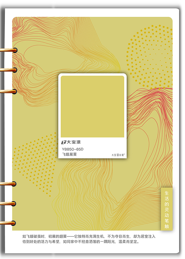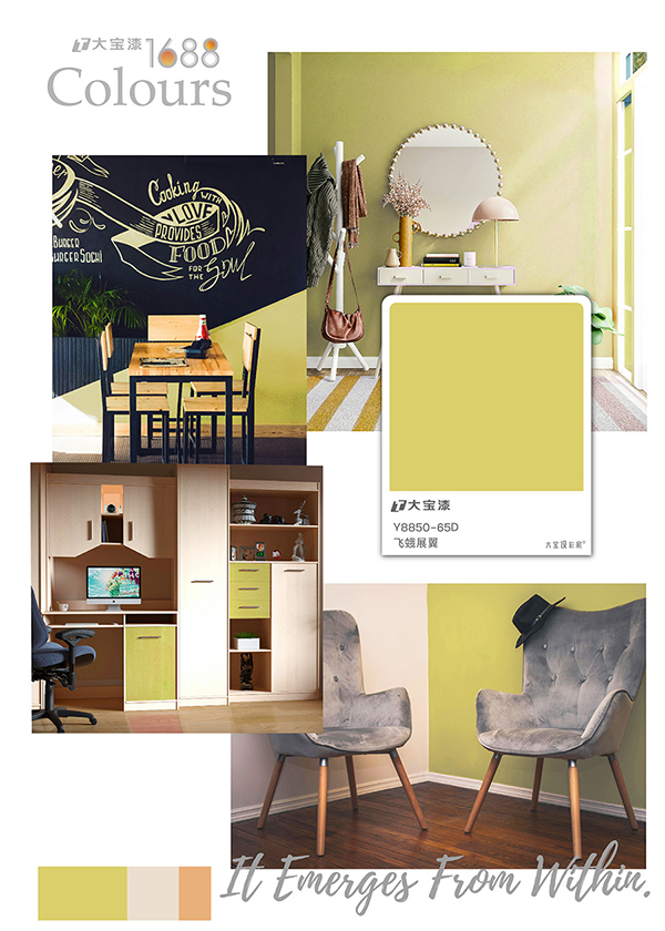 色彩敘事:一只飛蛾破繭時,翅膀初展的那抹帶著綠意的黃。如同陽光斑點,為家注入恰到好處的活力與希望。