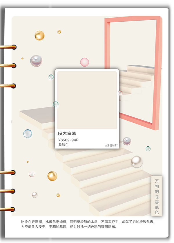 家居應用:作為全屋墻頂面的基礎色,是打造明亮通透空間的理想選擇。亦是木門、定制家具的萬能優選,襯托并提升其他色彩的質感。